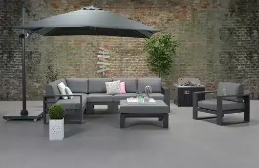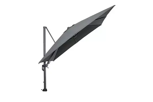 De Hawaii zweefparasol is verkrijgbaar in de kleuren antraciet, lichtgrijs, zandkleur en taupe met carbon zwart frame. De parasol is ook verkrijgbaar met ronde parasoldoek.
